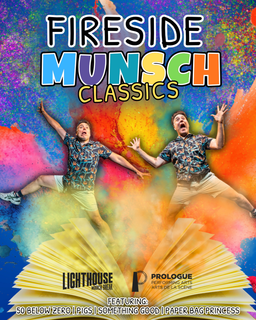 Fireside Munsch Classics is a laugh-out-loud, high-energy celebration of some of Canada’s most beloved children’s stories. Starring the wildly entertaining M. John Kennedy, this playful production brings four classic Robert Munsch tales to life in one wacky, fast-paced storytelling adventure. Audiences will delight in the outrageous antics of 50 Below Zero, the silliness of PIGS, the heartwarming surprises of Something Good, and the unforgettable heroine of The Paper Bag Princess.