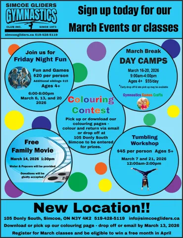 Located at the Simcoe Rec Centre (Annaleise Carr Aquatic Centre) from 8:00 - 4:30 daily March 10-14. Cost : $203 for the week. Register HERE!