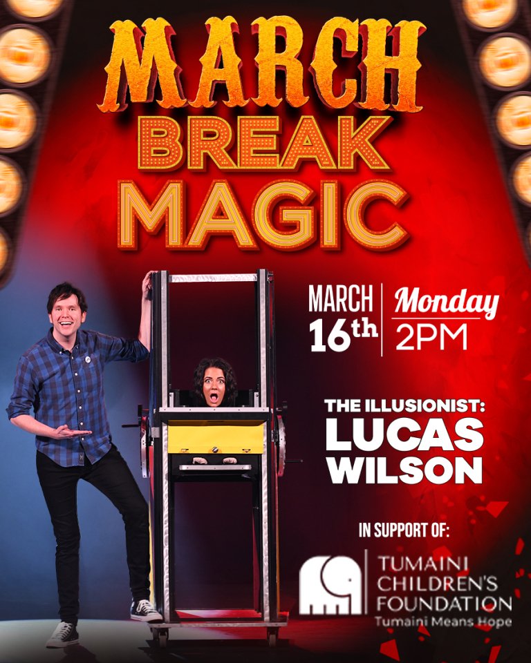 Bring the whole family as Lucas Wilson dazzles you with March Break Magic in support of Tumaini Children’s Foundation!